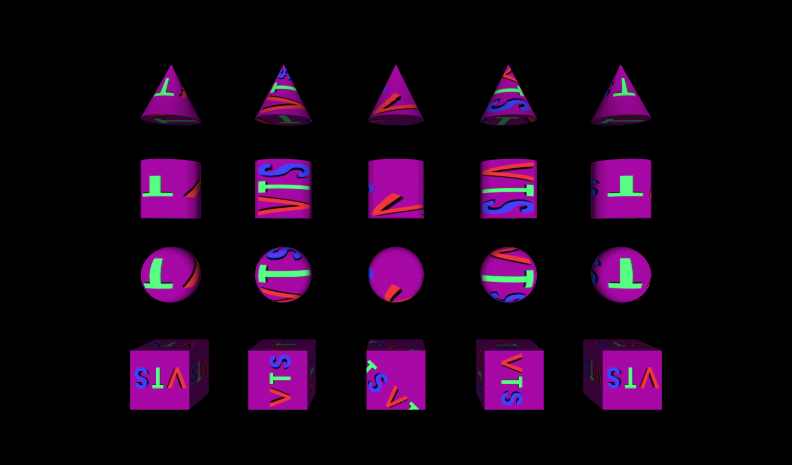 | 23 | <meta name='description' content='Test rotation field for ImageTexture mapping to primitive geometry. Test browser ability to apply rotations of (left to right) -180, -90, +45, 90 and 180 degrees to an ImageTexture mapped to the faces of primitive geometry, mapping with mapping rules. The result is (for all geometry faces): the first column of geometry should show the VTS logo upside-down and spelling to the left for all faces. The second column of geometry should map the VTS logo with the positive horizontal direction pointing up, and the positive vertical axis pointing left. The third column should map the VTS logo right side up, on a downward 45 degree angle. The fourth column should map the VTS logo vertically downward, with the +T direction to the right. The fifth column should be identical to column #1.'/> |