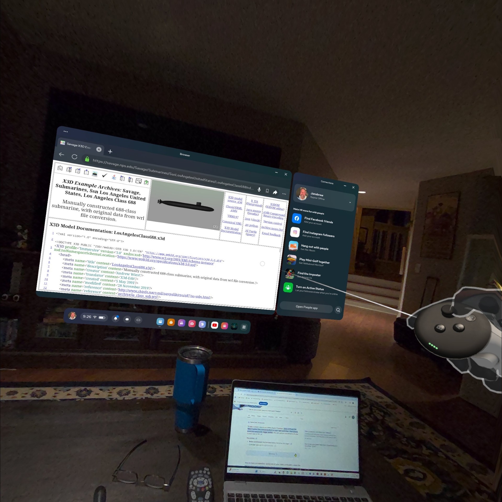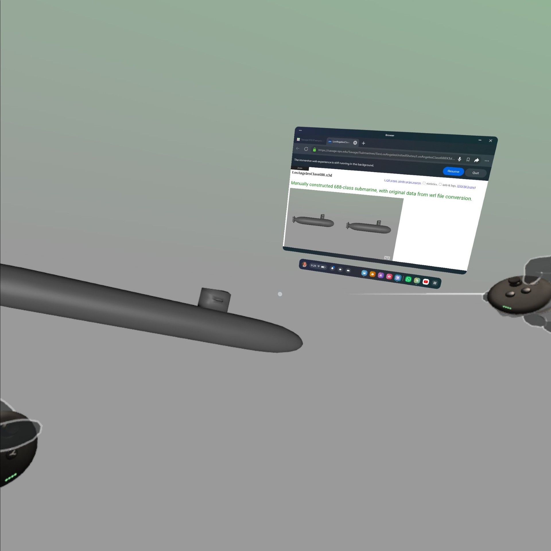 | 6 | <meta name='description' content='Manually constructed 688-class submarine, with original data from wrl (VRML97) file conversion. Meta Quest 3 XR screenshots by Jon Brewster.'/> |
