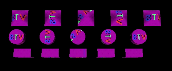 | 23 | <meta name='description' content='Test rotation field for ImageTexture mapping to complex geometry. Test browser ability to apply rotations of (left to right) -180, -90, +45, +90 and +180 degrees to an ImageTexture mapped to the faces of complex geometry, mapping with primitive mapping rules. The result is (for the bottom face of the ElevationGrid, the side and bottom end cap of the Extrusion, and the front of the IndexedFaceSet) the first column of geometry should show the VTS logo upside-down and spelling to the left for all faces. The second column of geometry should map the VTS logo with the positive horizontal direction pointing up, and the positive vertical axis pointing left. The third column should map the VTS logo right side up, on a downward 45 degree angle. The fourth column should map the VTS logo vertically downward, with the +T direction to the right. The fifth column should be identical to column #1. Opposite geometry faces should show reversed mapping, and side faces for the IndexedFaceSet should show smeared end pixels of the front and back faces.'/> |
