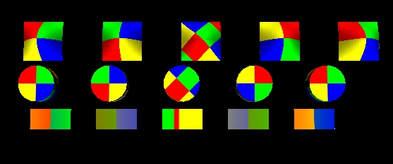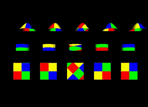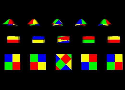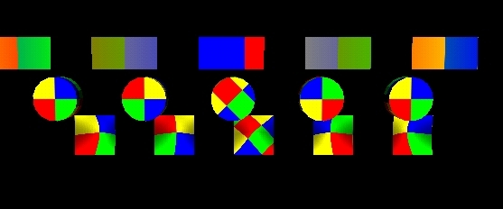 | 23 | <meta name='description' content='Test rotation field for PixelTexture mapping to complex geometry. Test browser ability to apply rotations of (left to right) -180, -90, +45, +90 and +180 degrees to a PixelTexture consisting of a square checkerboard of blue (lower left quadrant), yellow (lower right), red (upper right) and green (upper left) mapped to the faces of complex geometry, mapping with default complex geometry mapping rules. The result is (for the bottom face of the ElevationGrid, the side and bottom end cap of the Extrusion, and the front of the IndexedFaceSet) :the first column of geometry should display RED, GREEN, BLUE and YELLOW. The second columns should display GREEN, BLUE, YELLOW and RED. The third column should be a downward diagonal of YELLOW, BLUE on the top diagonal, GREEN RED, GREEN, RED on the middle diagonal, and YELLOW, BLUE on the botttom diagonal. The fourth column should display YELLOW, RED, GREEN and BLUE. The fifth columsn should display RED, GREEN, BLUE and YELLOW. Opposite geometry faces should show reversed mapping, and side faces for the IndexedFaceSet should show smeared end pixels of the front and back faces.'/> |