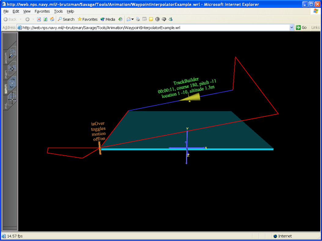 | 6 | <meta name='description' content='Example set of waypoints, plus either leg durations or speed(s), which demonstrates resulting position/orientation interpolation. Motion can be stopped/started by placing mouse over orange TouchSensor Box. A HiddenViewpoint also exists under the coordinate axes. Trace values are printed in the browser console.'/> |