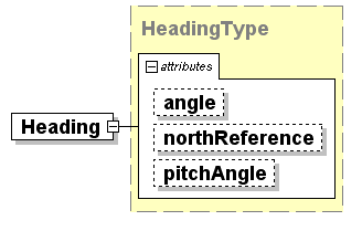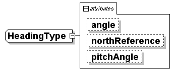 | source | <xs:complexType name="HeadingType"> <xs:complexContent> <xs:extension base="FullyExtensibleSMALElementType"> <xs:attribute name="angle" type="xs:float" default="0"/> <xs:attribute name="northReference" type="northReferenceEnumeration" default="MAGNETIC"/> <xs:attribute name="pitchAngle" type="xs:float" default="0"/> </xs:extension> </xs:complexContent> </xs:complexType> |