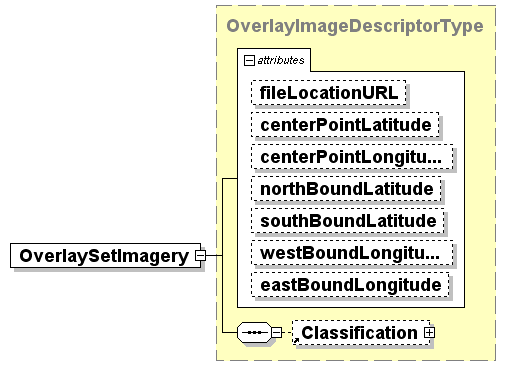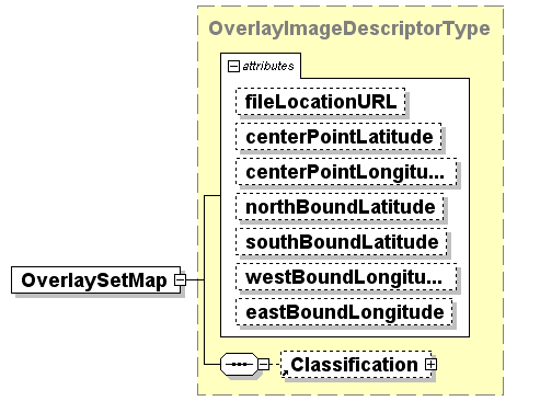 | source | <xs:complexType name="OverlayImageDescriptorType"> <xs:annotation> <xs:appinfo>Super-type used to describe an image overlay for a TerrainTile. The image is referenced by a URI, and its geographic location and extent is described using centerpoint and bounding latitudes/longitudes.</xs:appinfo> </xs:annotation> <xs:complexContent> <xs:extension base="FullyExtensibleSMALElementType"> <xs:sequence> <xs:element ref="Classification" minOccurs="0"/> </xs:sequence> <xs:attribute name="fileLocationURL" type="xs:anyURI" default="http://www.web3d.org/x3d/content/examples/"/> <xs:attribute name="centerPointLatitude" type="latitudeOrdinatePattern" use="optional" default="N00 00.0"/> <xs:attribute name="centerPointLongitude" type="longitudeOrdinatePattern" use="optional" default="W00 00.0"/> <xs:attribute name="northBoundLatitude" type="latitudeOrdinatePattern" use="optional" default="N00 00.0"/> <xs:attribute name="southBoundLatitude" type="latitudeOrdinatePattern" use="optional" default="N00 00.0"/> <xs:attribute name="westBoundLongitude" type="longitudeOrdinatePattern" use="optional" default="W00 00.0"/> <xs:attribute name="eastBoundLongitude" type="longitudeOrdinatePattern" use="optional" default="W00 00.0"/> </xs:extension> </xs:complexContent> </xs:complexType> |