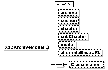 | source | <xs:element name="X3DArchiveModel" substitutionGroup="ObjectModel"> <xs:complexType> <xs:complexContent> <xs:extension base="FullyExtensibleSMALElementType"> <xs:sequence> <xs:element ref="Classification" minOccurs="0"/> </xs:sequence> <xs:attribute name="archive" type="modelArchiveEnumeration" default="Savage"/> <xs:attribute name="section" type="xs:NMTOKEN"/> <xs:attribute name="chapter" type="xs:NMTOKEN"/> <xs:attribute name="subChapter" type="xs:NMTOKEN"/> <xs:attribute name="model" type="xs:NMTOKEN"/> <xs:attribute name="alternateBaseURL" type="xs:anyURI" default="http://www.web3d.org/x3d/content/examples/"> <xs:annotation> <xs:appinfo>Required only when using non-SAVAGE archive x3d models.</xs:appinfo> </xs:annotation> </xs:attribute> </xs:extension> </xs:complexContent> </xs:complexType> </xs:element> |