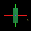Resized Box with a small width, a medium height, and a large depth. Coordinate axes superimposed to show X3D/VRML directions. |