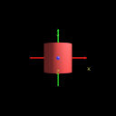 Default Cylinder, with coordinate axes superimposed to show X3D/VRML directions |