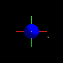 Default Sphere, with coordinate axes superimposed to show X3D/VRML directions |