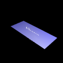 Two lines of text with a flat box between them, with coordinate axes superimposed to show X3D/VRML directions |