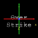 Show overstrike, using DEF and USE to share font properties, with coordinate axes superimposed to show X3D/VRML directions |