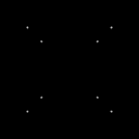 Figure 13.10 Point Set Box Corners | Points in an IndexedPointSet mark the eight corners of a box. Point size is always 1 pixel regardless of distance. |