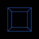 Figure 13.11 Indexed Line Set Box Wireframe | A simple wireframe cube drawn with IndexedLineSet. |