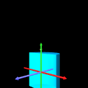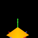 Figure 15.13 Extruded Pyramid With Axes | A pyramid built by scaling a square cross section to 0.01 at the pyramid apex. |