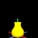 Figure 15.14 Extruded Vase With Axes | A vase built by scaling a circular cross section at each coordinate along a straight spine. |